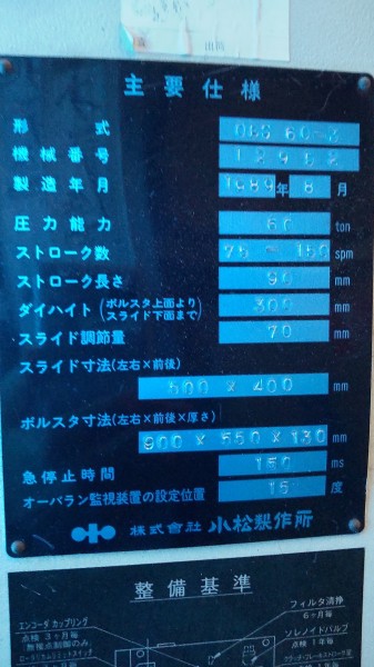 コマツ OBS60-3 / KOMATSU Power Press OBS60-3(SM018)