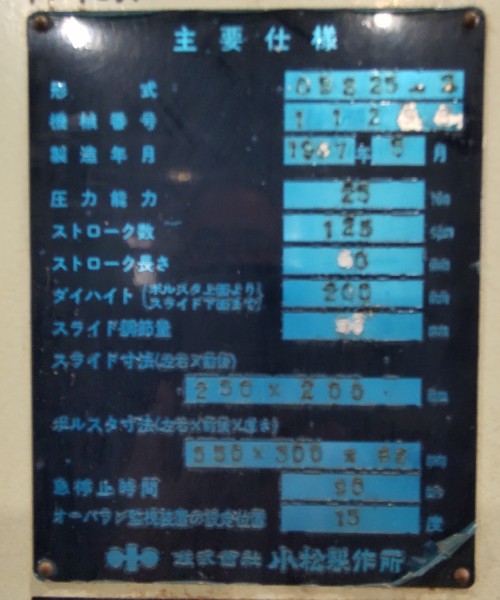 コマツ OBS25-2 / KOMATSU Power Press OBS25-2(SM194)